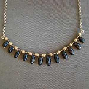 14 kt / 18 kt geel gouden choker 12 obsidiaan cabuchons