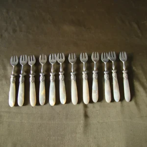12 oude verzilverde mossel vorkjes parelmoer
