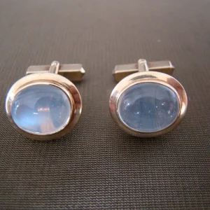 14 kt geel gouden manchetknopen met ovale maansteen