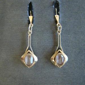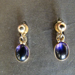 14 kt geel gouden oorbellen paarse steen cabuchon