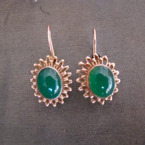 14 kt geel gouden oorhaakjes met groene glassteen