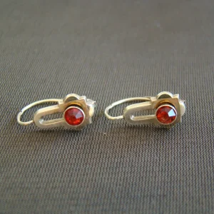 14 kt geel gouden oorbellen rood-rose glassteentje ca 1910