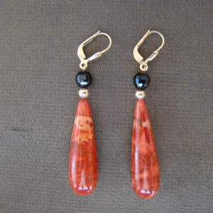 14 kt geel gouden oorhangers jaspis en onyx L 5,3 cm