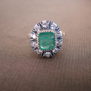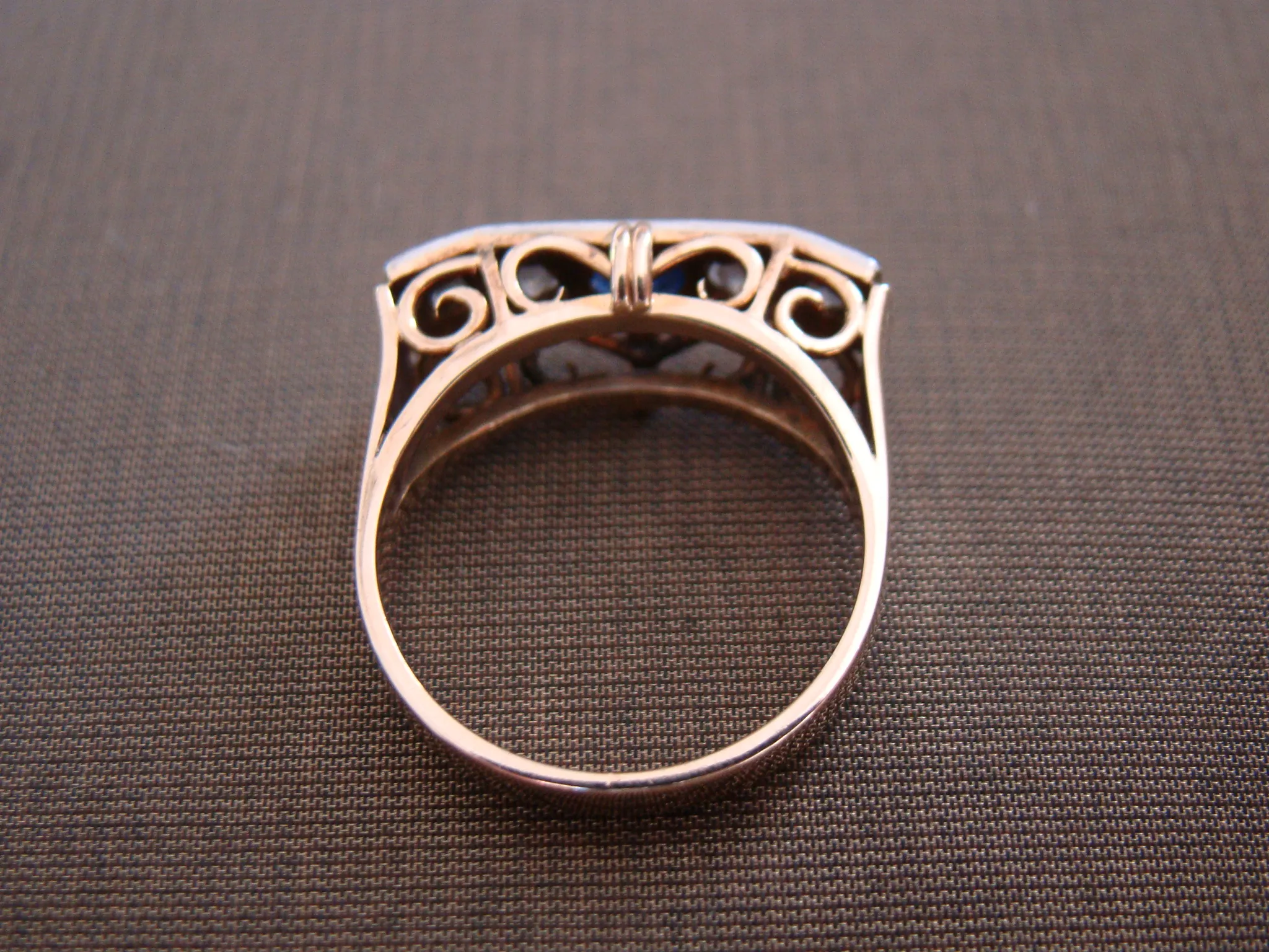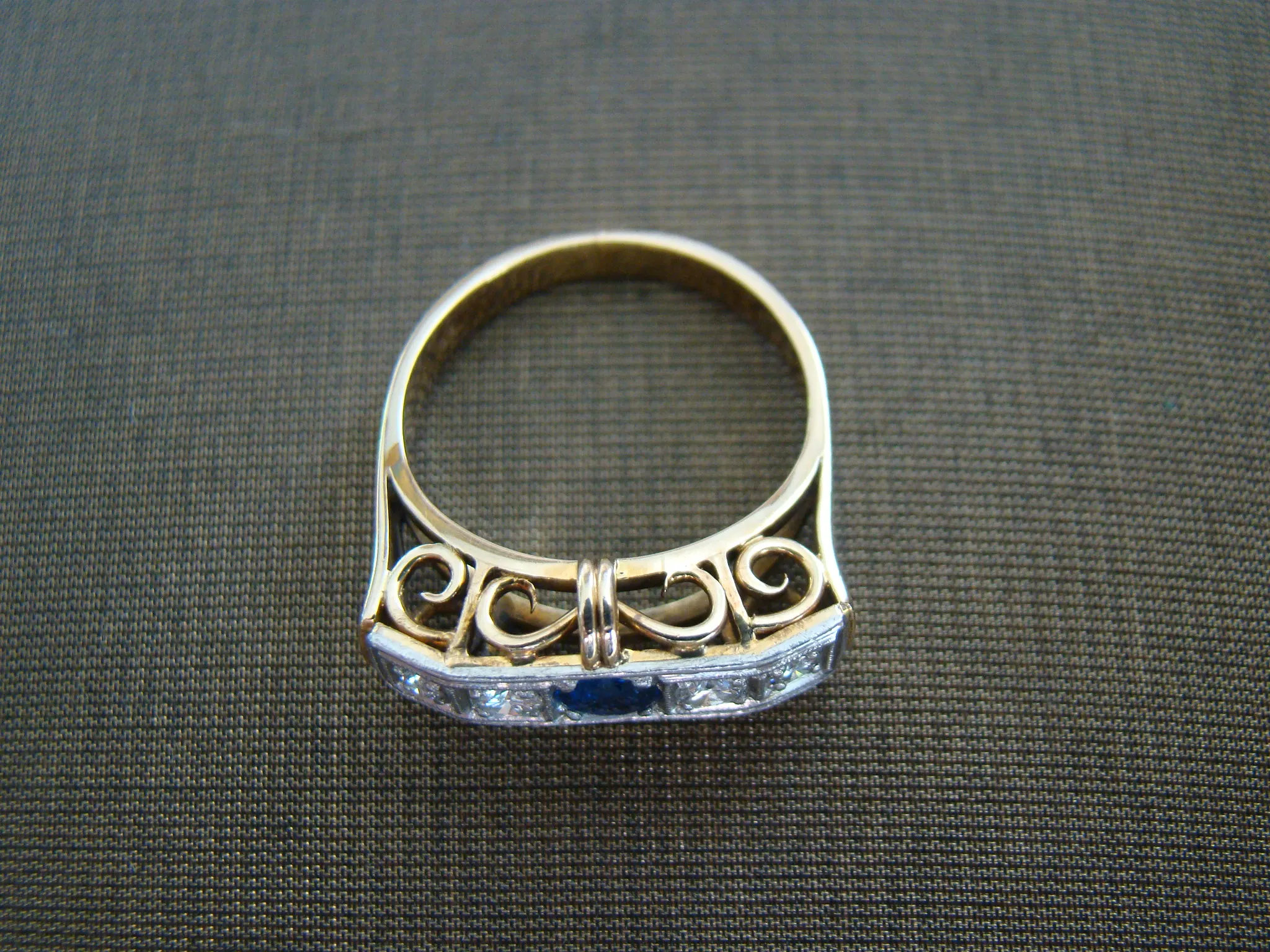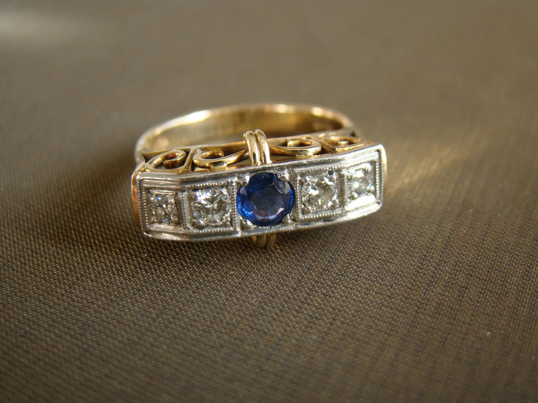 14 kt bicolor gouden antieke ring rij met saffier en ca. 0,24 diamant maat 18