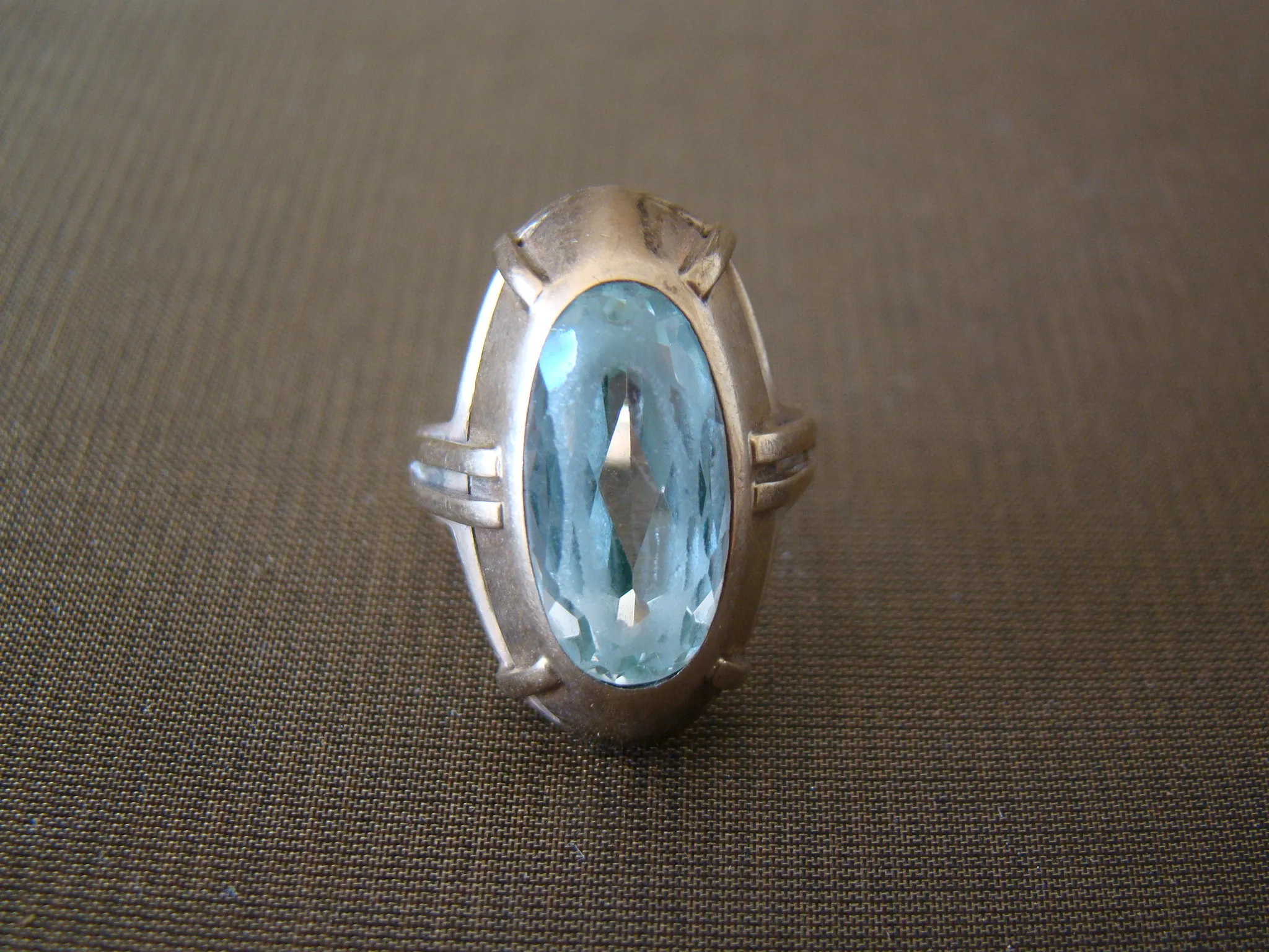 8 kt geel gouden antieke hoge ring aquamarijn
