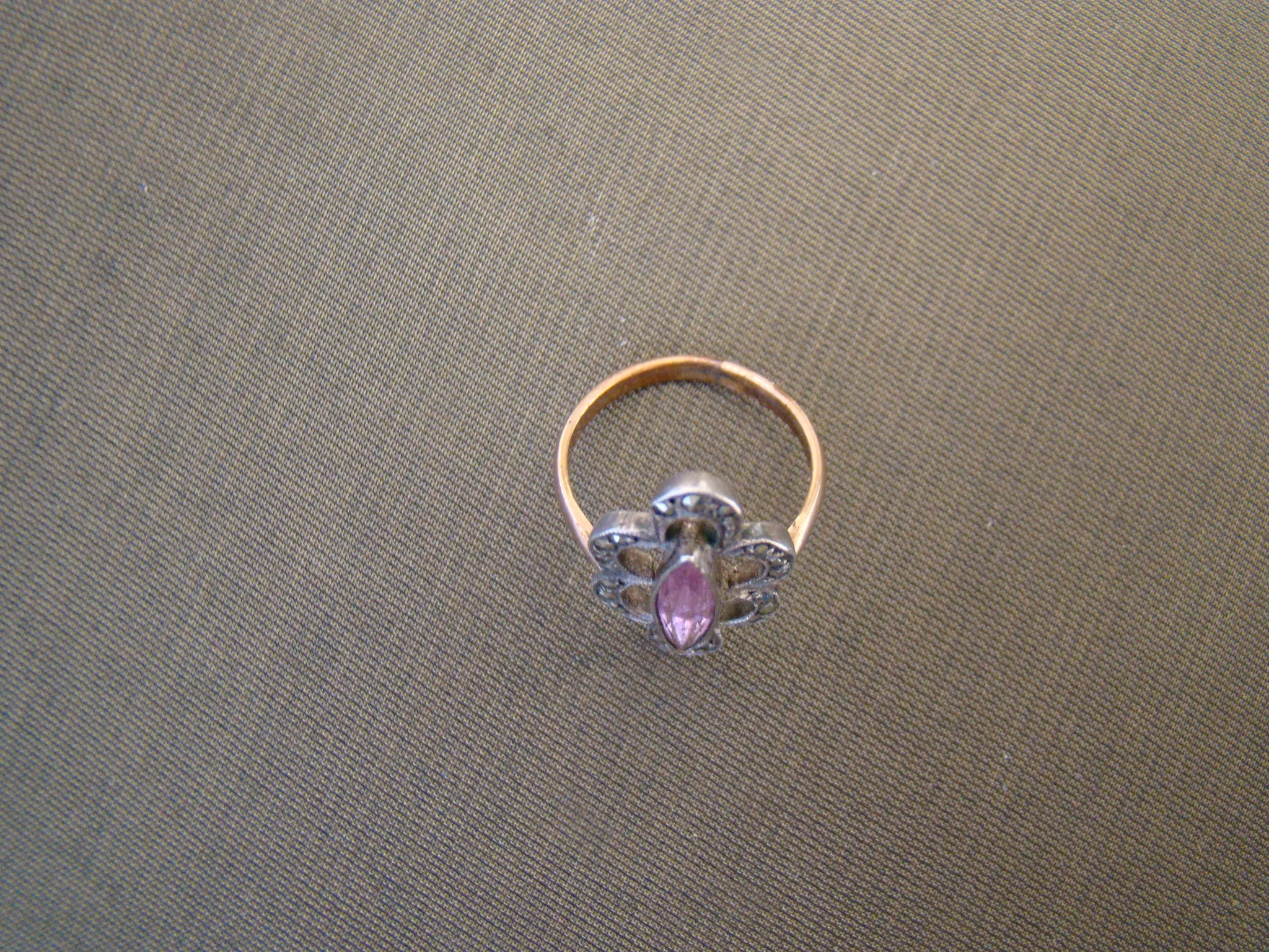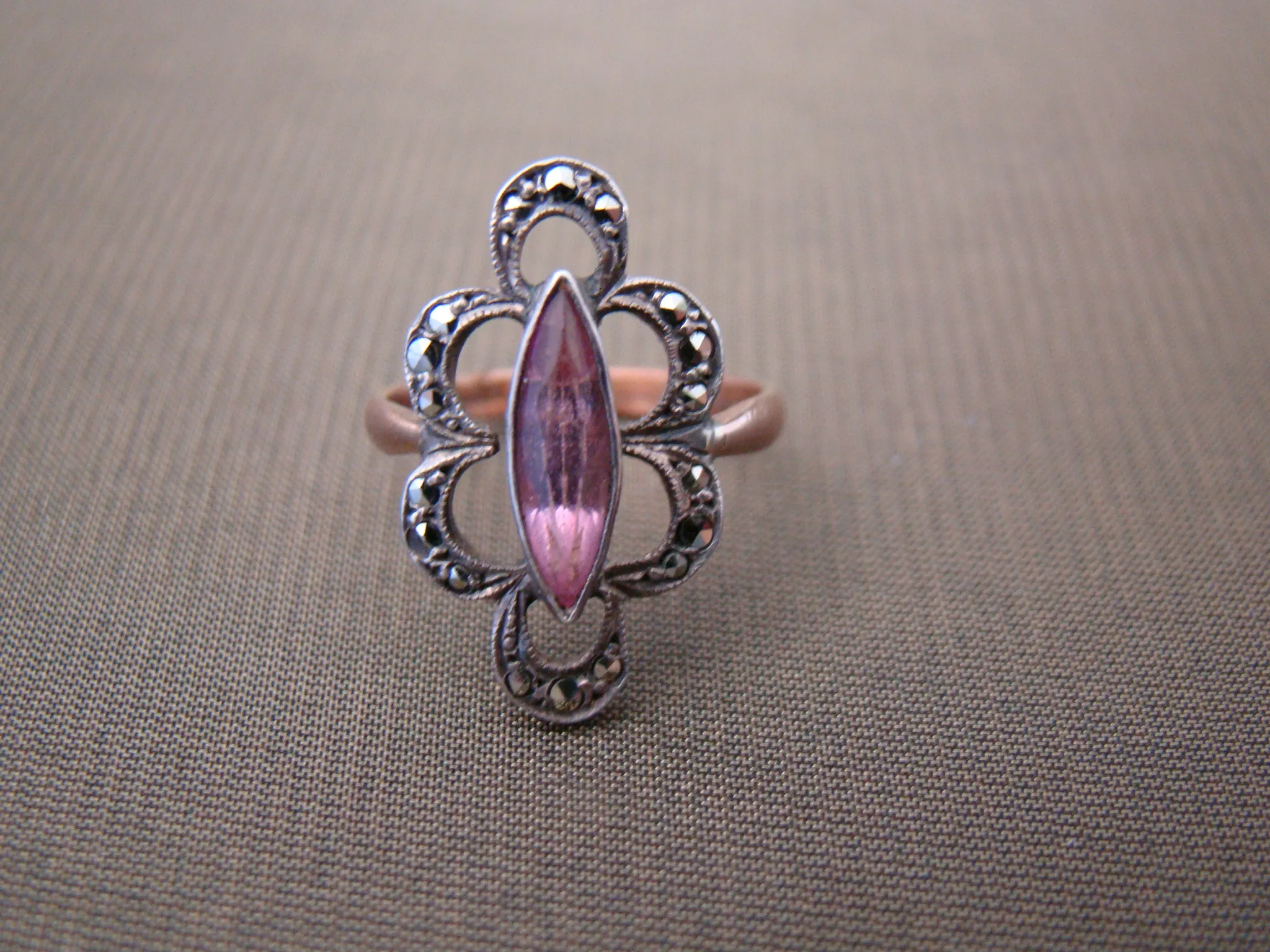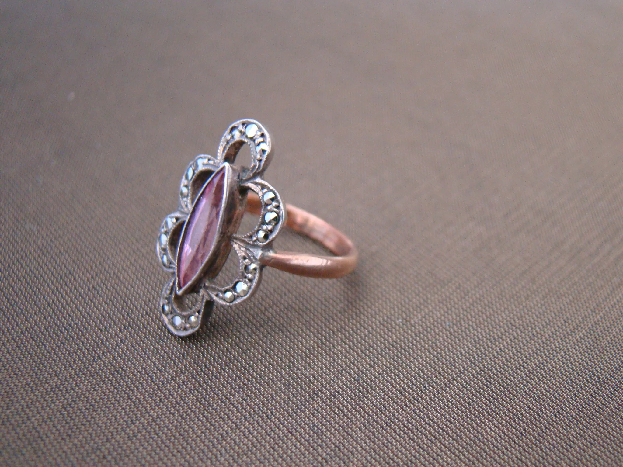 9 kt rood gouden zilveren antieke ring rose steen markesiet