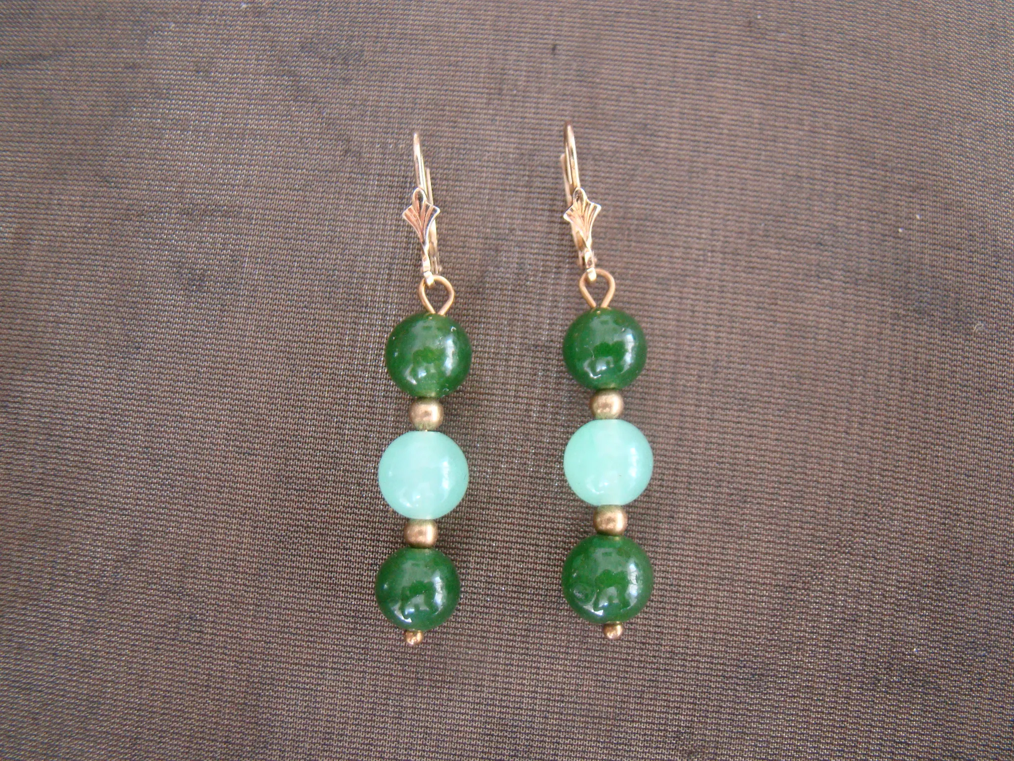 zilveren oorhangers 3 ronde jade bolletjes verguld
